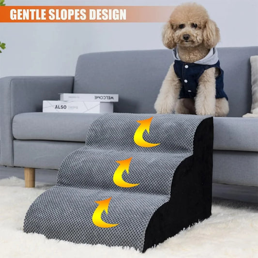 3-Step Soft Pet Ramp – Non-Slip, Comfortable Stairs for Small Dogs & Cats, Grey & Black