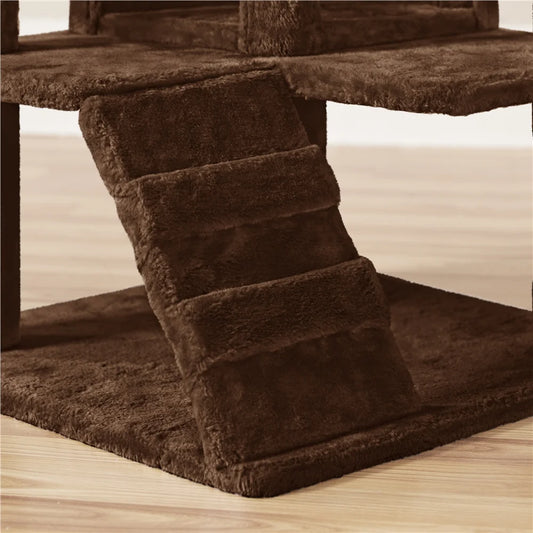 53.9" H Cat Tree with Double Condos, Scratching Posts & Ramp, Brown