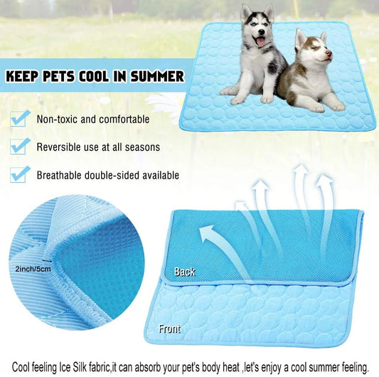 Dog Cooling Mat, Pet Dog Self Cooling Pad, Ice Silk Washable Summer Cool Mat for Cats, Kennels, Crates and Beds(S)